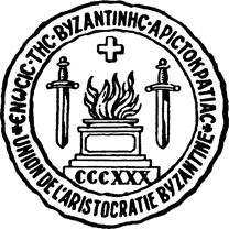 Questo è il sigillo dell'Unione di Aristocrazia bizantina. La sua appartenenza è solo su appuntamento della Famiglia Imperiale e ratificata dal Consiglio dell'Unione. Un certificato è emesso dal segretario. Un membro deve avere uno status di nobile stirpe reale bizantina. Attualmente, ci sono solo cinque membri che vivono nell'esarcato nordamericano; due conti, un marchese, un duca e un granduca.